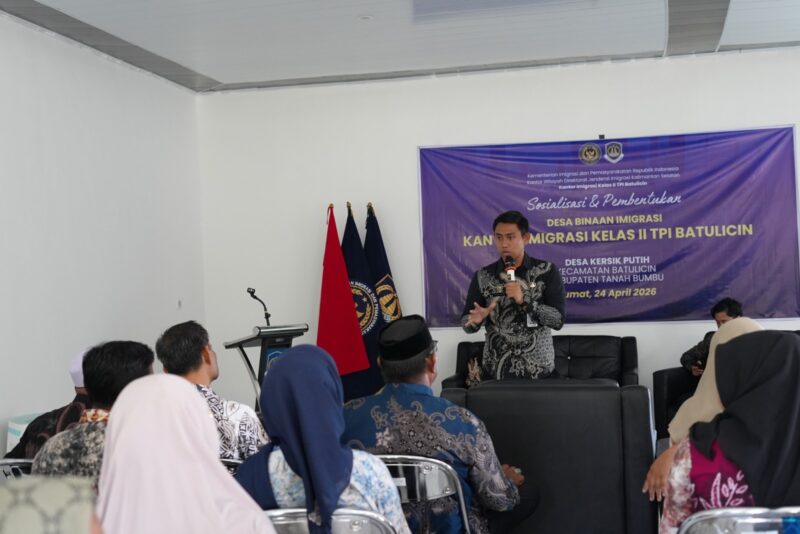 Batulicin,matarakyat.co.id – Dalam rangka optimalisasi penyebaran informasi keimigrasian sekaligus pencegahan Tindak Pidana Perdagangan Orang (TPPO), Kantor Imigrasi Kelas II TPI Batulicin melaksanakan kegiatan Desa Binaan Imigrasi di Desa Kersik Putih, Kecamatan Batulicin, Kabupaten Tanah Bumbu, pada Jumat (24/04/2026).