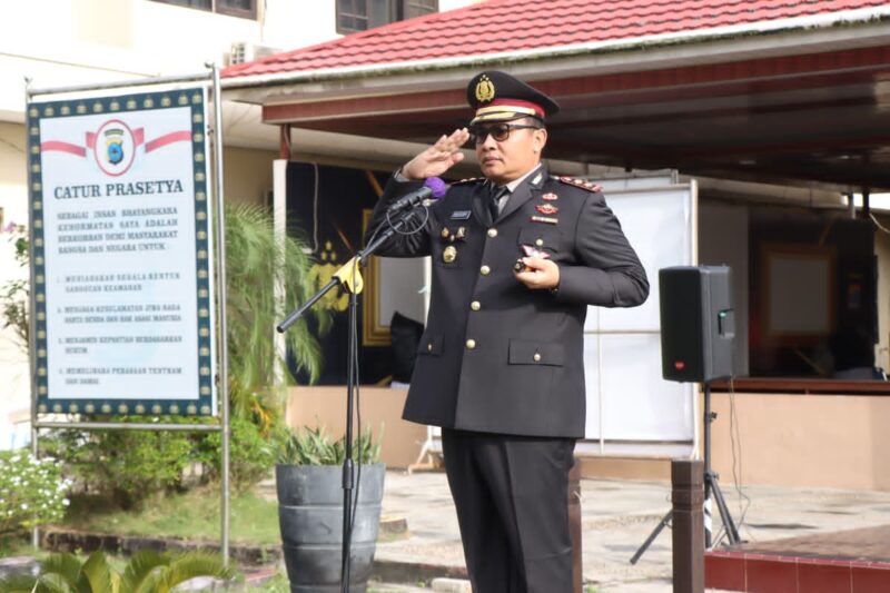 Kapolres Banjarbaru AKBP Pius X Febry Aceng Loda memimpin langsung upacara tersebut sebagai inspektur.