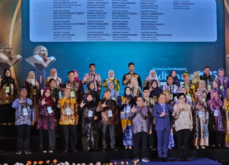 Pada tingkat nasional, tiga sekolah ditetapkan sebagai penerima Adiwiyata Nasional 2025, yakni SDN Sungai Alang 2 Karang Intan, SMP Darul Hijrah Puteri Martapura, dan SMPN 1 Pengaron.