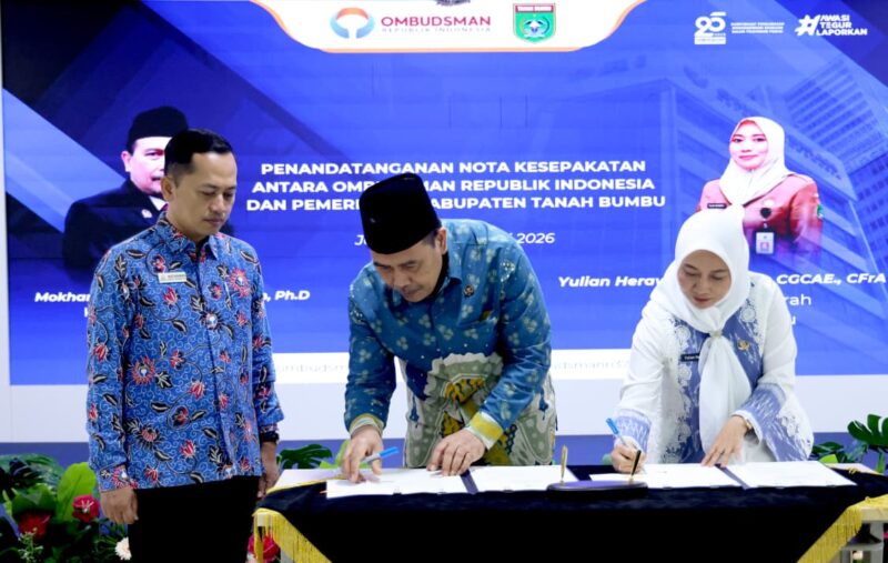 Batulicin, matarakyat.co.id – Pemerintah Kabupaten Tanah Bumbu melakukan penandatanganan Naskah Kerjasama (MoU) dengan Ombudsman Republik Indonesia, Selasa (27/1/2026) di Jakarta. Kerja sama ini menjadi wujud komitmen bersama dalam mewujudkan tata kelola pemerintahan yang bersih, transparan, serta bebas dari praktik maladministrasi.