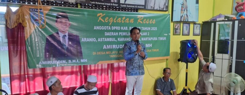 Martapura,matarakyat.co.id – Anggota DPRD Kabupaten Banjar, Amiruddin yang juga Ketua Komisi I, menggelar reses di Desa Melayu RT 02 RW 02, Kecamatan Martapura Timur, Jumat (25/7/2025) sore.