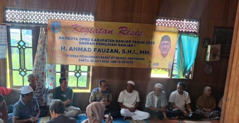 Martapura,matarakyat.co.id – Anggota DPRD Kabupaten Banjar dari Fraksi Golkar, H Ahmad Fauzan, melaksanakan kegiatan reses di Desa Pasayangan Barat, Kecamatan Martapura, Sabtu (26/7/2025) pagi.