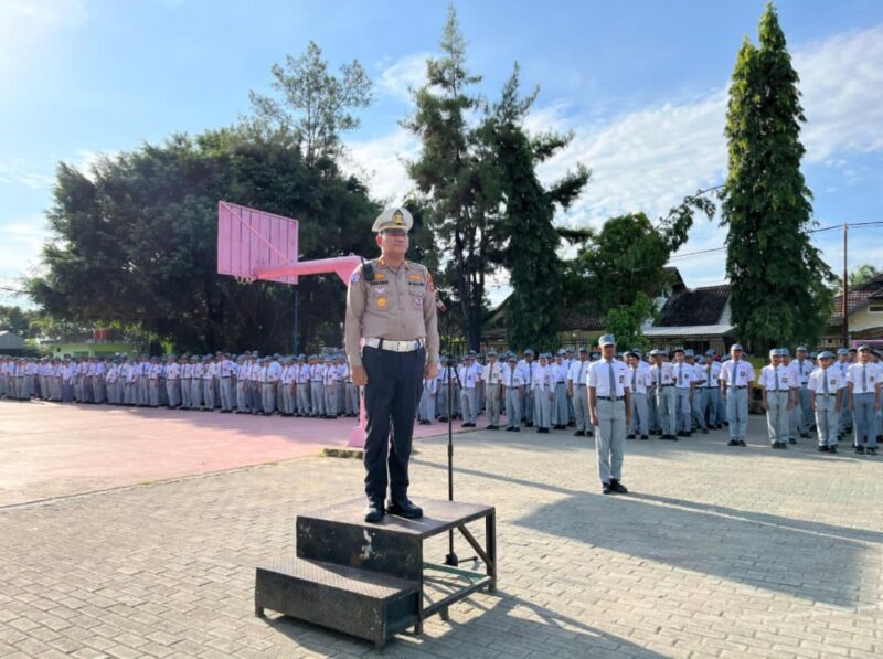 “Police Goes To School” yang dikemas dalam kegiatan “Polantas Menyapa” di SMK Negeri 2 Banjarbaru, Senin (29/9/2025).