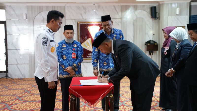 Prosesi ditandai dengan penandatanganan berita acara dan penyerahan Surat Keputusan (SK) Bupati.